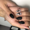 Реже встречаются, но встречаются в черном маникюре и цветах на ногтях, те же черные и белые точки, бантики и даже символы, которые также имеют свое место в маникюре с черным лаком для ногтей.