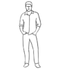 4. Расслабленная поза для мужчины, стоящего прямо. У мужчин часто возникают проблемы с положением плеч. Если вы попросите его положить руки полностью или частично в передние карманы, вам будет гарантирована естественная и расслабленная поза.