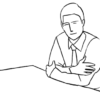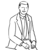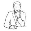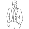 14. Мужчина опирается на стол, скрестив руки. Опять же, размещение профессии модели на столе предполагает ее профессию.
