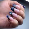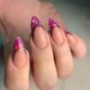 Мелкая акриловая пудра — воск, благодаря своим крошечным мерцающим частицам, может завершить любой дизайн волшебным сиянием. Благодаря этому материалу ногти могут иметь голографический, жемчужный, жемчужный или зеркальный блеск. Воск можно наносить как на весь ноготь, так и на отдельные участки. Вы спросите, а какое это имеет отношение к французскому лабиринту? Самым прямым способом. Используйте в процессе создания линии улыбки не лак, а один из видов пудры, аккуратно создавая глянцевый участок на кончике ногтя. Основа может быть прозрачной или цветной, в зависимости от ваших предпочтений. Результат просто потрясающий!