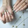 Очень красиво и немного празднично смотрится маникюр со стразами, что позволяет кардинально преобразить дизайн всего несколькими камнями. Изюм прекрасно отражает даже самые мелкие блики света и непременно привлечет внимание к вашим рукам. При оформлении французского узора лучше всего отдавать предпочтение камням одного размера и типа. Кристаллы Сваровски — самые популярные. Маленькие камешки волшебным образом подчеркивают линию улыбки или лунную линию, участвуют в создании узоров и могут украсить каждый ноготь одним кристаллом.